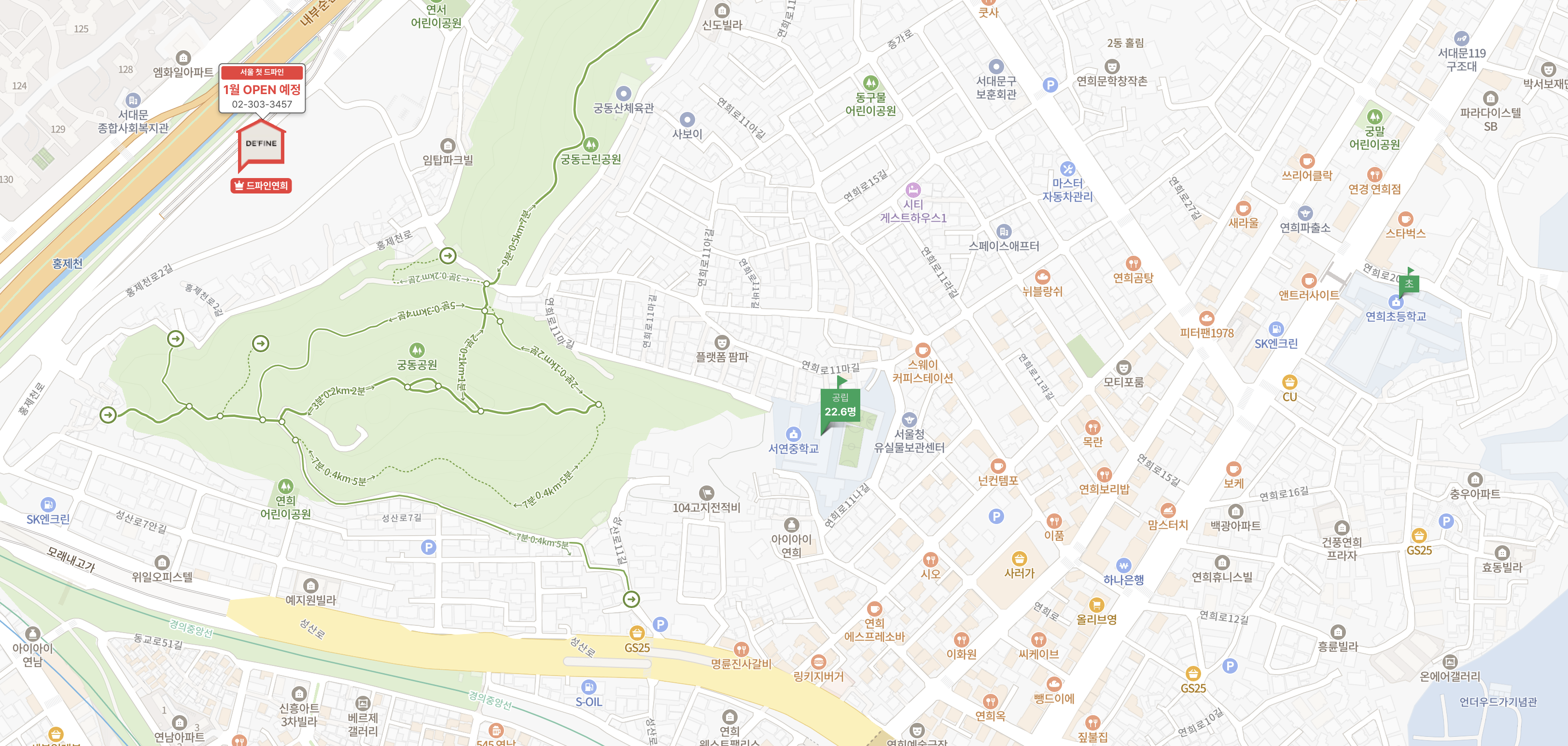 연희자연마을상권, 현대백화점 신촌점, 이대병원 등